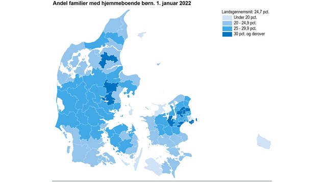 Danmarks statistik har offentliggjort nye tal for familie sammensætningen i Danmark. Der bor børn i hver 4 familie. En familie består af en eller flere personer, der bor på den samme adresse og har indbyrdes relationer.
