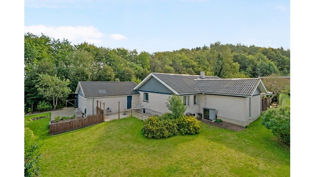 Huset ligger for enden af en lukket vej og med en dejlig ugeneret have. Samtidig ligger huset i første parket til grønne skovarealer og kun få minutter til Tange sø.